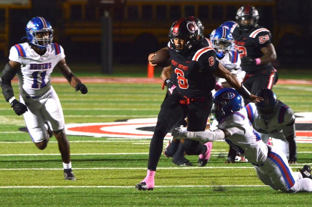 NEDERLAND — Port Neches-Groves celebrated a milestone victory Friday night, defeating rival Nederland 49–17 in the 100th edition ...