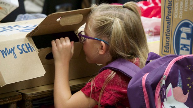 - Students at Langham Elementary open their school supply pack during Nederland ISD’s first day of school in August 2019. (Cassandra Jenkins/The News)